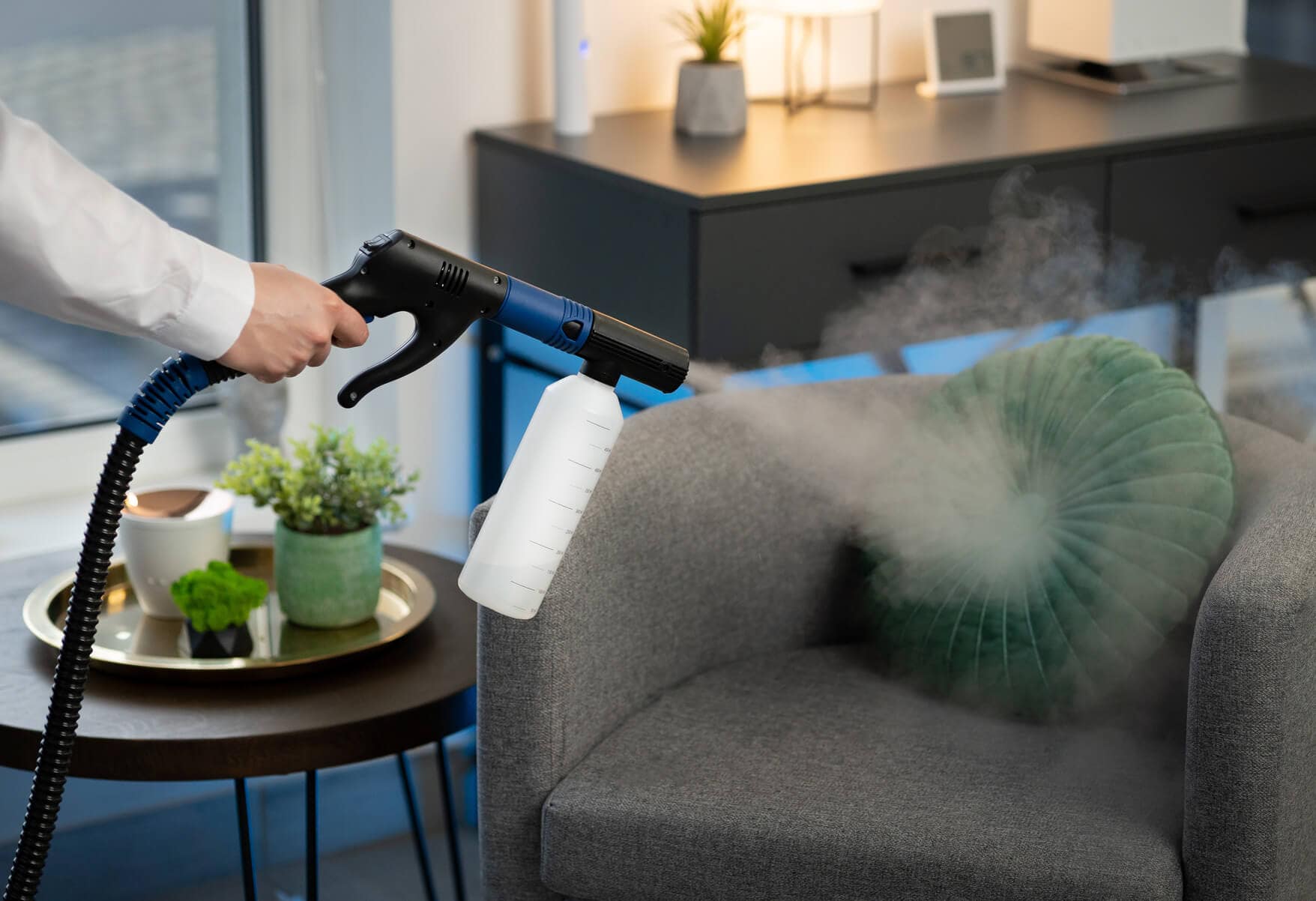The steam mixes with the liquid and creates a perfect THERMO FOGGING mixture for spraying on every kind of surface.